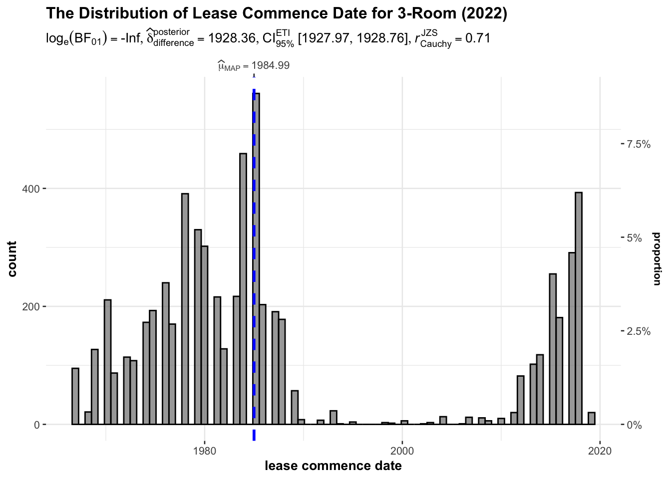 title="The Distribution of Lease Commence Date for 3-Room (2022)",