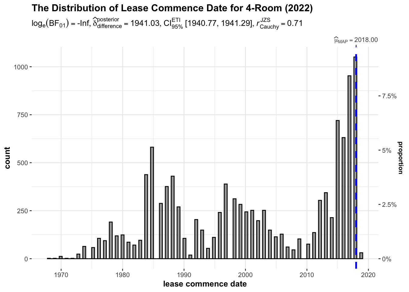 title="The Distribution of Lease Commence Date for 4-Room (2022)",