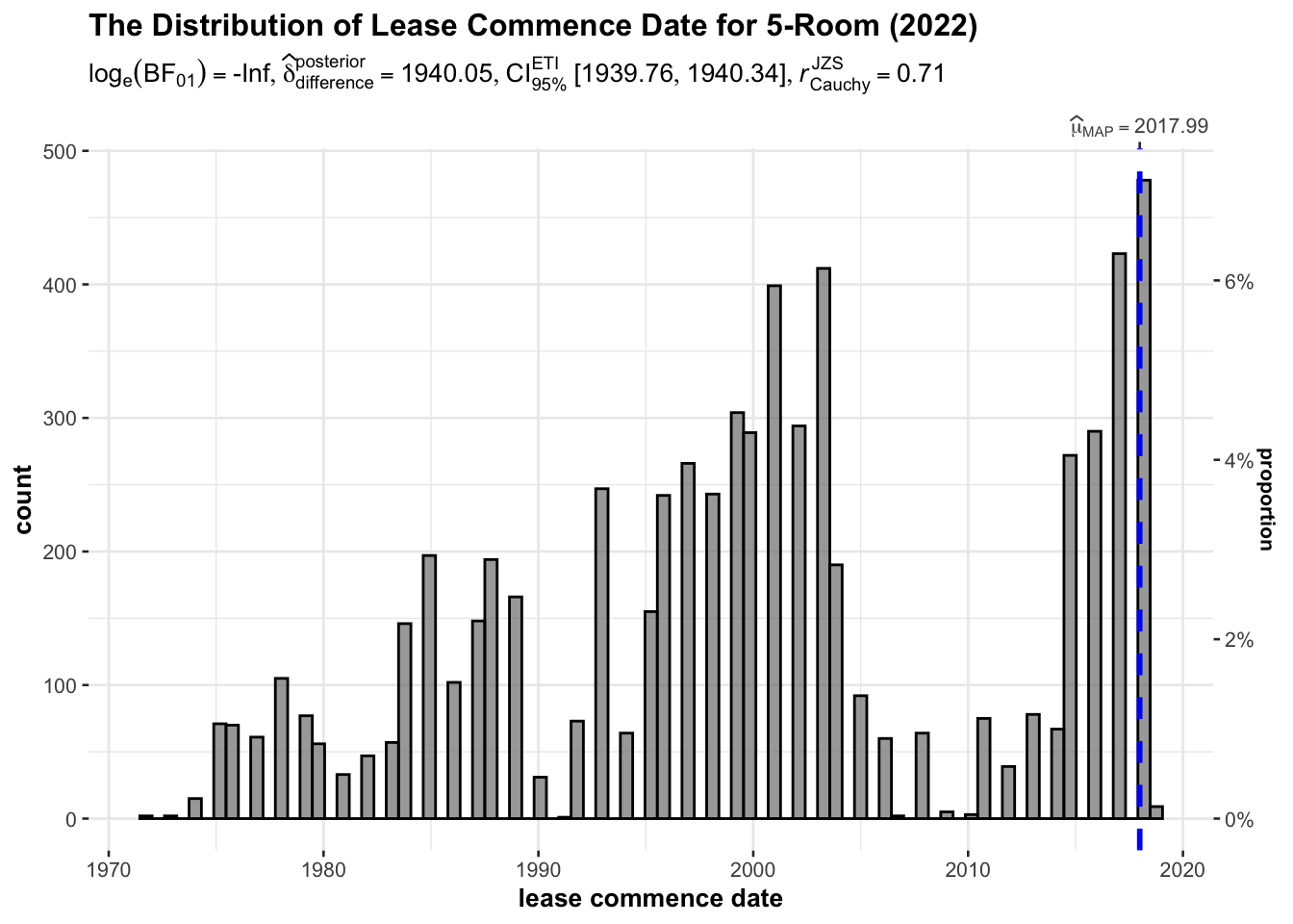 title="The Distribution of Lease Commence Date for 5-Room (2022)",