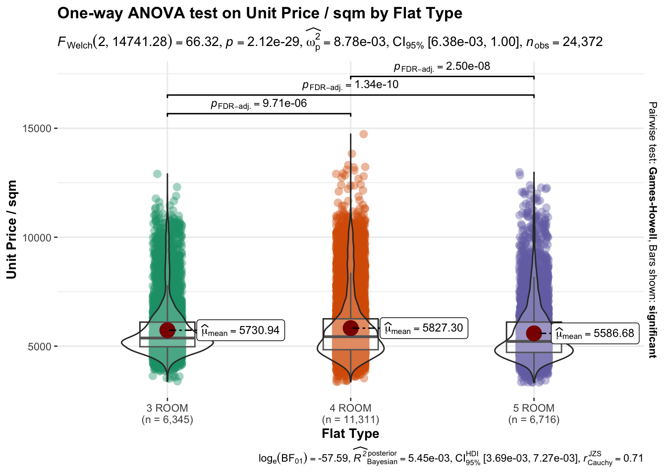 p + labs(title = "One-way ANOVA test on Unit Price / sqm by Flat Type",